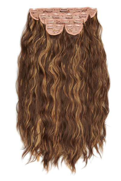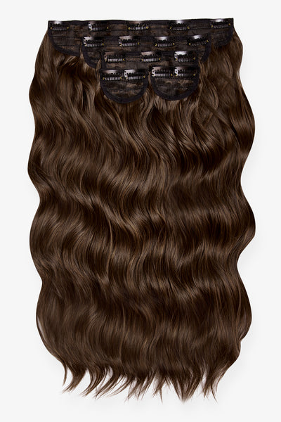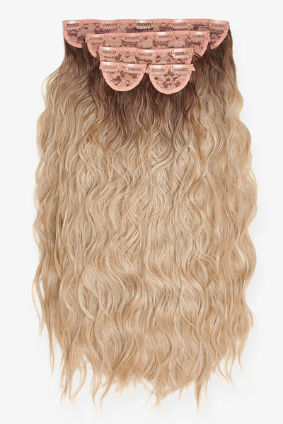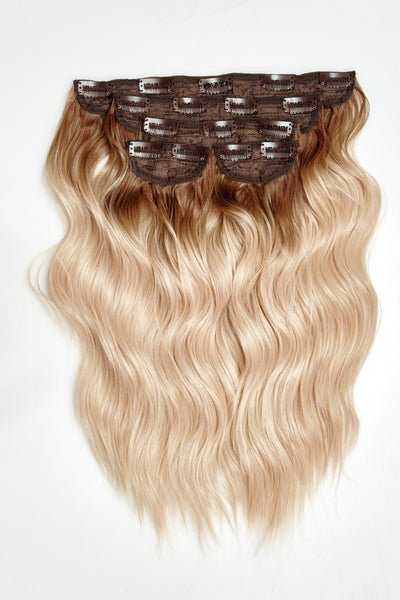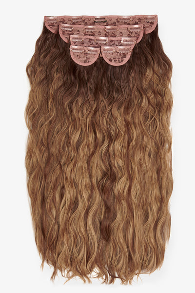 Extensions de cheveux à clip ondulés naturels super épais de 22 po en 5 pièces