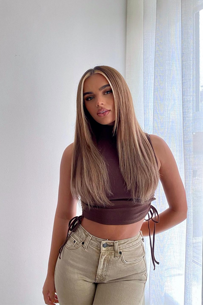 Poney de luxe en cheveux humains doré de 22 po